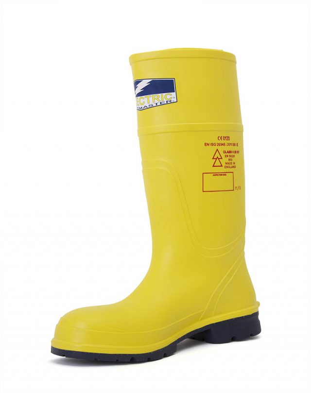 Dielectric Safety Steel-Toe Wellington Respirex. High-Voltage-resistant dielectric compound, Resist 20KV on complete boot, Resists 35KV on the sole. 200 Joule steel toe cap EN ISO 20345, EN ISO 50321, EN ISO 50345 standards. 100% waterproof