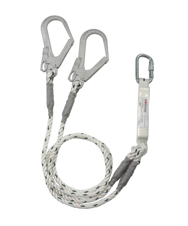 WORKSafe® Energy Absorber with Double Rope Safety Lanyard, 2 Scaffold Hooks, Twist-Lock Karabiner.